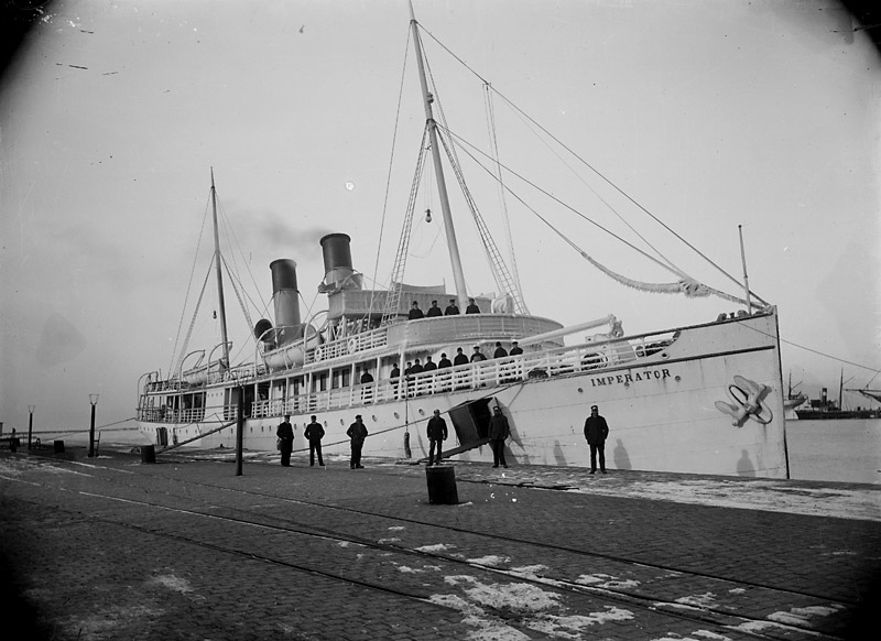 Postångaren Imperator vid kaj i Trelleborg. Imperator var det första postförande ångfartyget på Trelleborg-Sassnitz-leden.