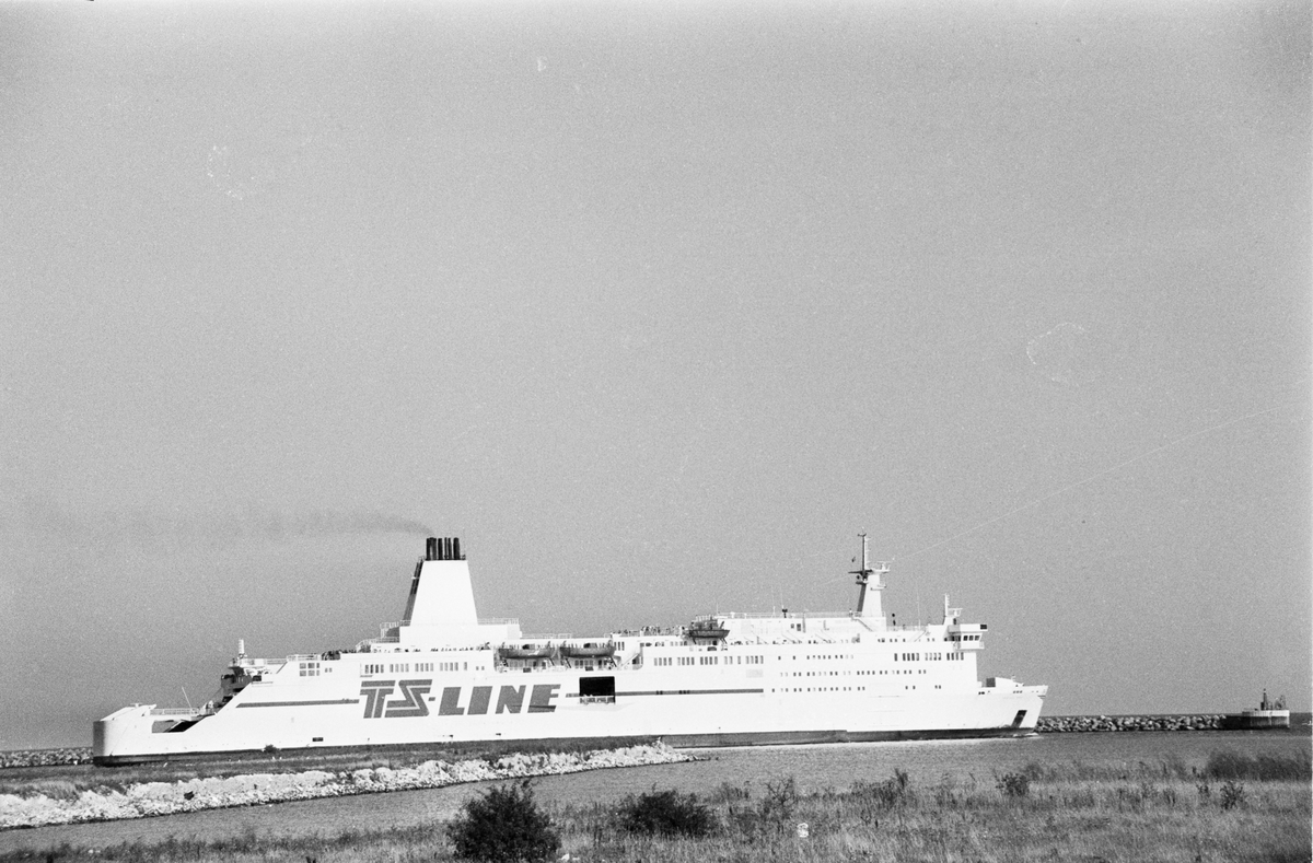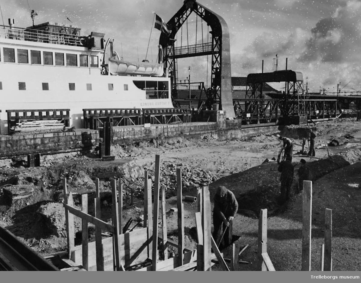 Trelleborg Ombyggnad av färjeläget år 1959. Färjan Konung Gustaf V i hamnen