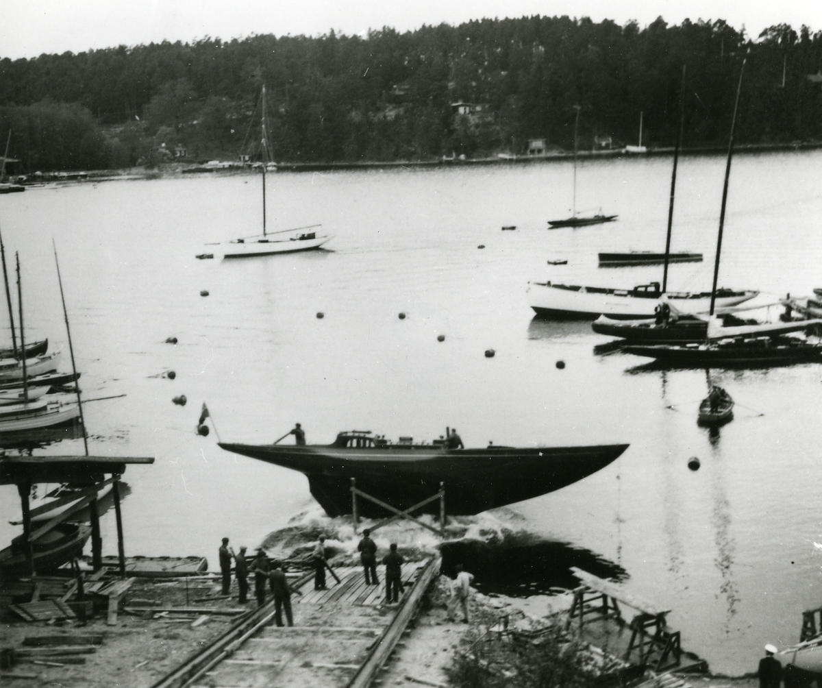 "Neglingevarvet, sjösättning av 'Schubert-yacht'" 1929