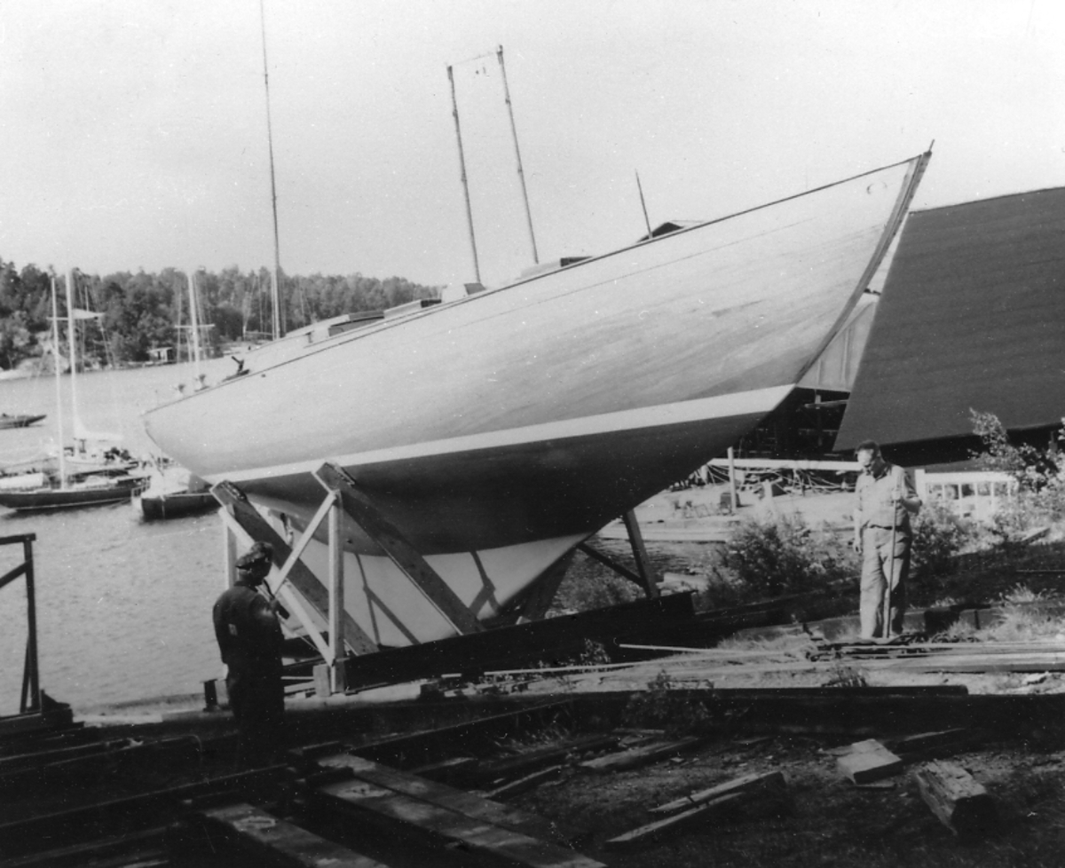 AGNETA på slipen före sjösättning på Neglingevarvet 1951. Båten tillhör Numera Fiat chefen, Giovanni Agnelli, Italien.