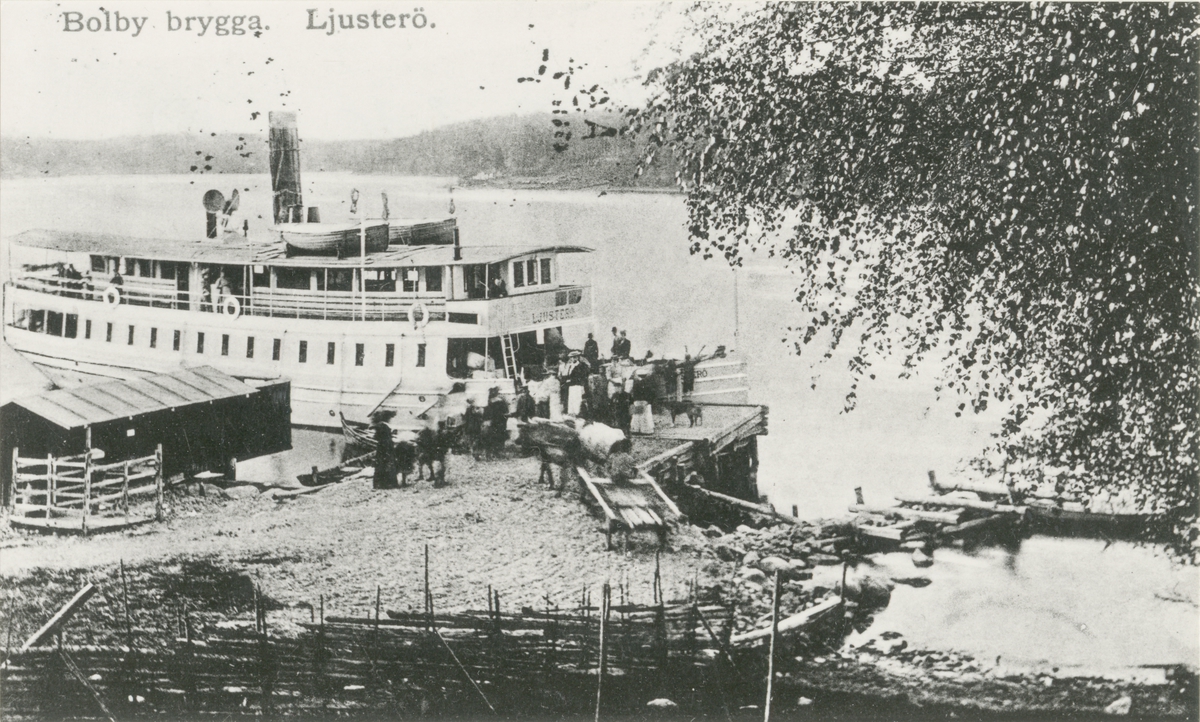 passagerarångfartyget Ljusterö hemahörande i Ljusterö, vid Bolby brygga Ljusterö, omkring 1908-talet.