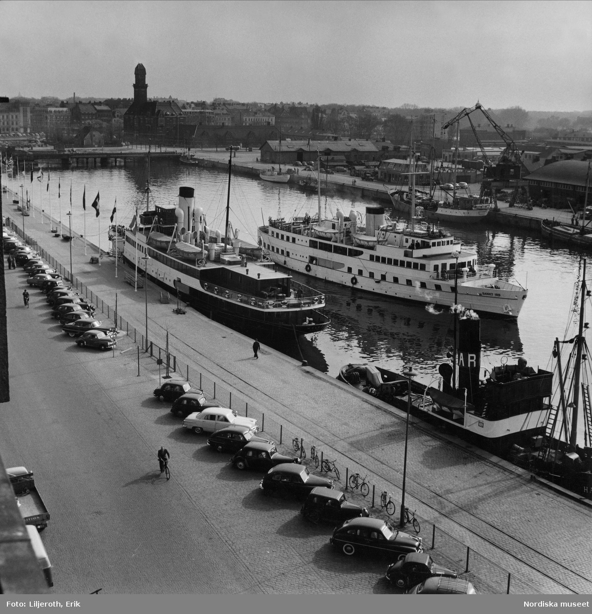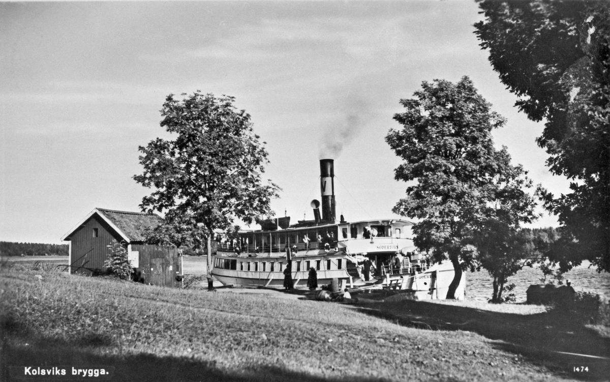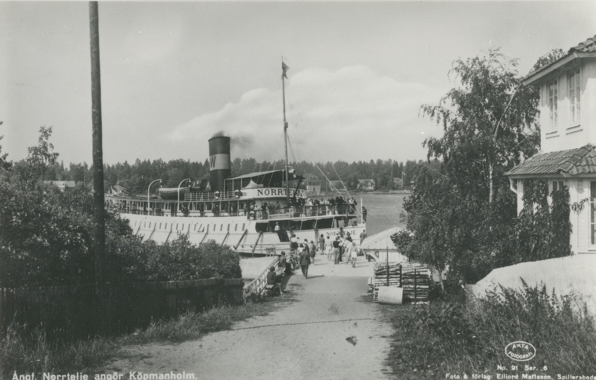 Ångfartyget Norrtelje angör Köpmanholms brygga. foto: Mattsson, Per Erik Eliord 1950 talet ?