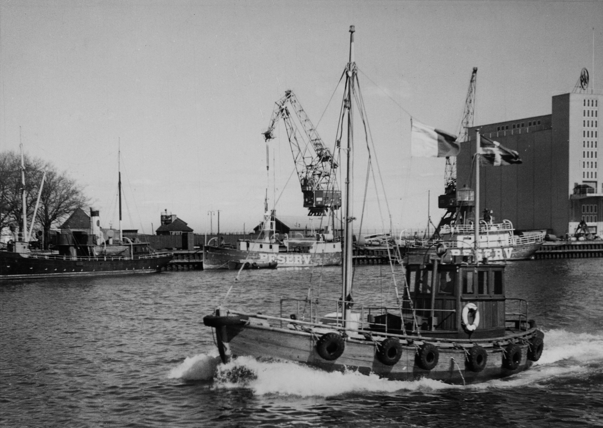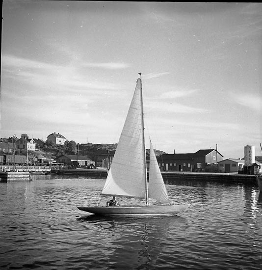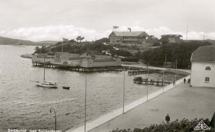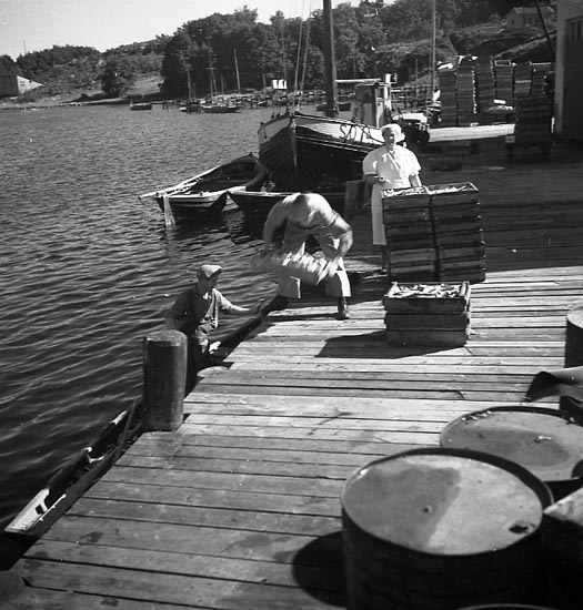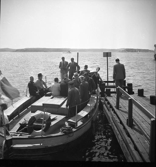 Passagerarbåten "M/S Böljan" vid brygga för avstigning eller påstigning av resenär. 1940 talet