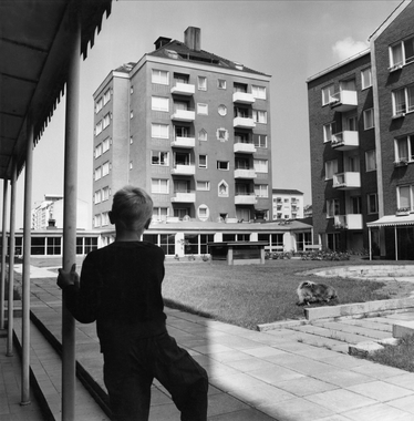 Gårdsinteriör från Tessins väg, Malmö. I förgrunden pojke med ...